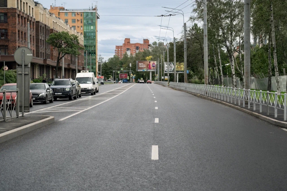 Ключевым этапом стало обновление Светлановской площади и участка Светлановского проспекта протяженностью 2,6 км - от площади до пересечения с Тихорецким проспектом. Здесь уложено порядка 90 тыс. кв. м нового асфальта на проезжей части и тротуарах, нанесена современная разметка и восстановлено благоустройство.